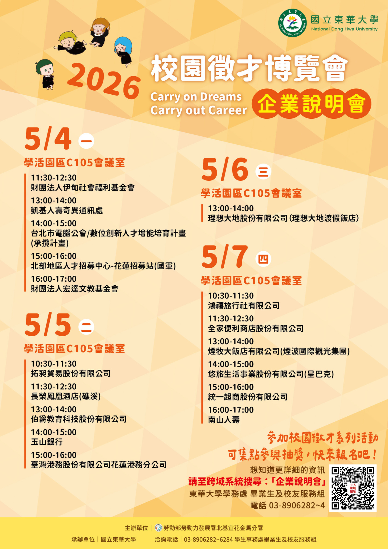 東華大學設置大學儲備軍官訓練團(ROTC)教育中心籌備處,特辦理115年度ROTC招募說明會與經驗分享