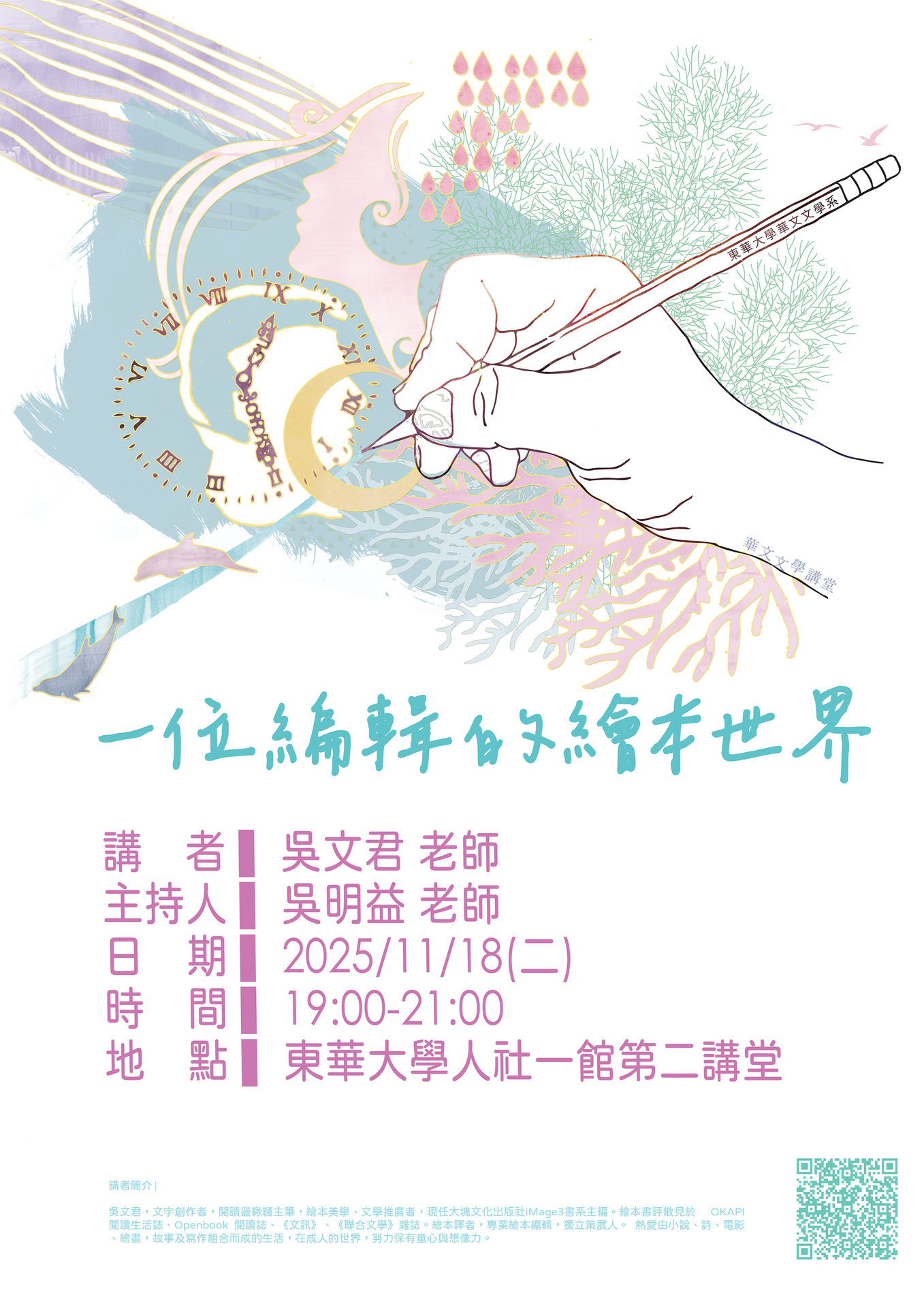 國立東華大學「114-1通識教育專題講座」於10月20日舉行本學期第四場講座「我熱愛的,不一定會愛我?熱情與愛情的雙向修煉」,榮幸邀請人氣Podcast「分手的99個理由」製作暨主持人胡咪老師到校演講,以輕鬆生動的方式與同學們分享如何面對生命裡必經的「愛情學分」。