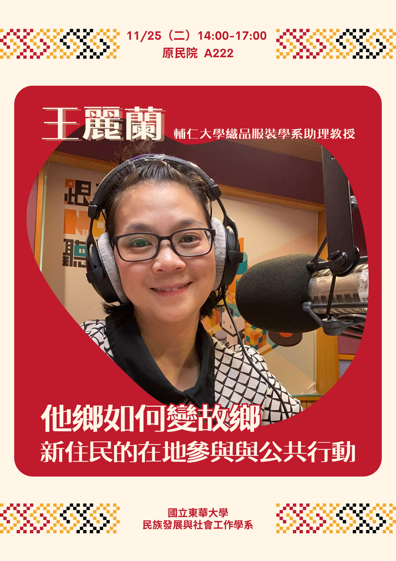 國立東華大學亞太區域研究博士班和東華大學社會參與中心於11月1日舉辦「看見移工日常:宜蘭冬山走讀」移地教學活動。本次課程由人文社會科學院高教深耕計畫以及社會參與中心USR計畫經費補助,並由梁莉芳老師帶領,邀請長期在宜蘭生活與工作的移工、新住民朋友與學生分享他們生命經驗與跨國遷移歷程。