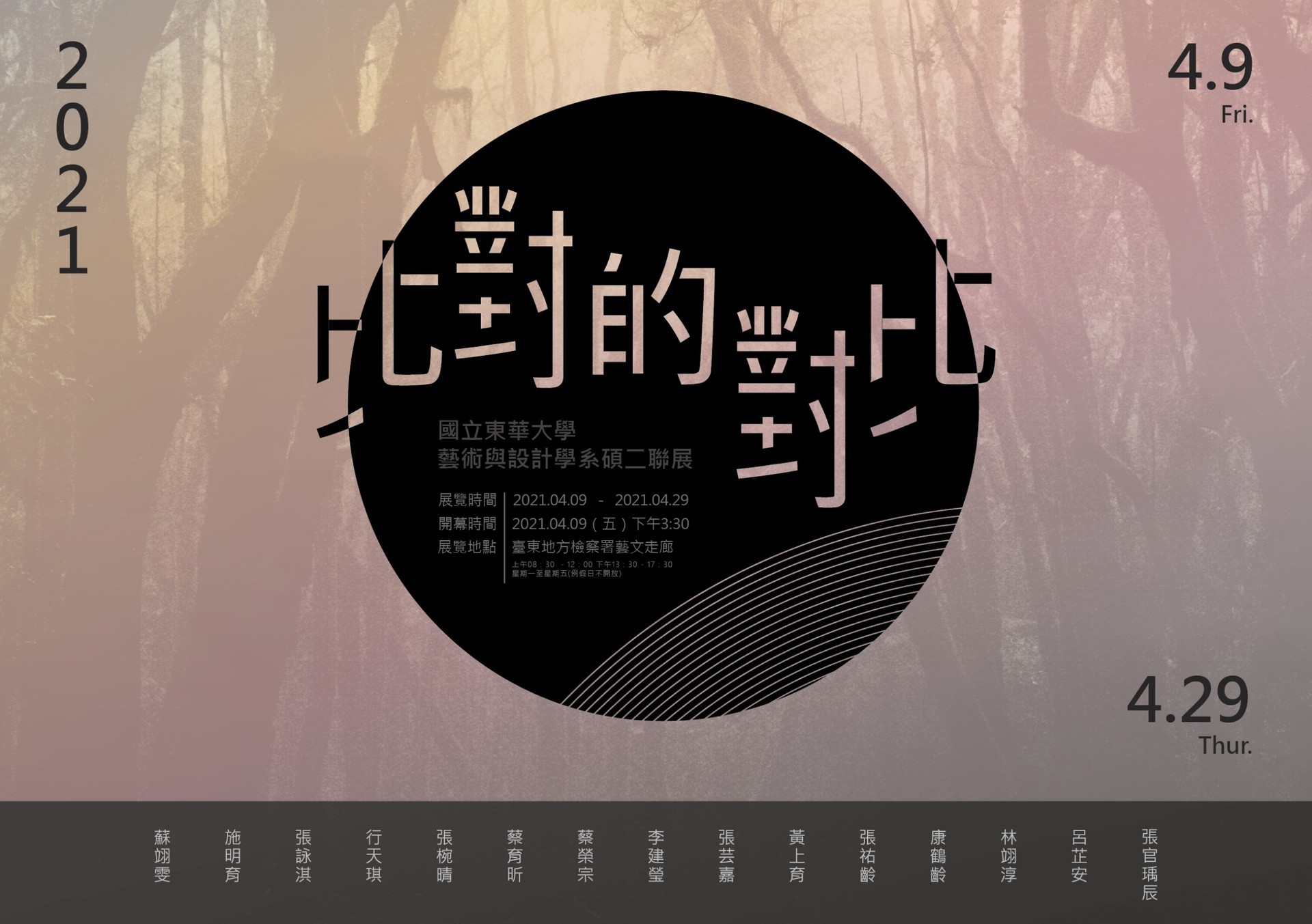 來自花蓮國立東華大學藝術與設計學系碩士班的創作者們,以「對比對的互相比對」來呈現出所謂的好與壞沒有絕對的區分,好壞是相對的,互相比對、互相對比,能夠更加接近客觀事實。在臺灣臺東地方檢查署這個神聖的思辯空間內,展出他們精心創作的創品,期盼透過藝術品使觀賞者產生新的對話與想法,究竟哪些是對的,哪些又是錯的呢?