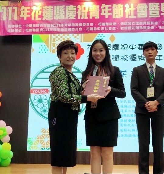 救國團辦理「111年青年節大專優秀青年」選拔,國立東華大學推薦5名學生參加遴選皆獲獎,分別為全國代表:自然資源與環境學系五年級林冠妤同學於3月29日青年節於救國團劍潭海外青年中心經國紀念堂代表受獎。縣市代表:特殊教育學系四年級詹馥萱同學於3月30日接受花蓮縣代表受獎。校級代表:民族社會工作學士學位學程四年級葉治挺同學,資訊管理學系四年級趙聖軒同學及國際企業學系四年級鄭睿泰同學,由趙涵㨗校長於3月28日親自表揚。