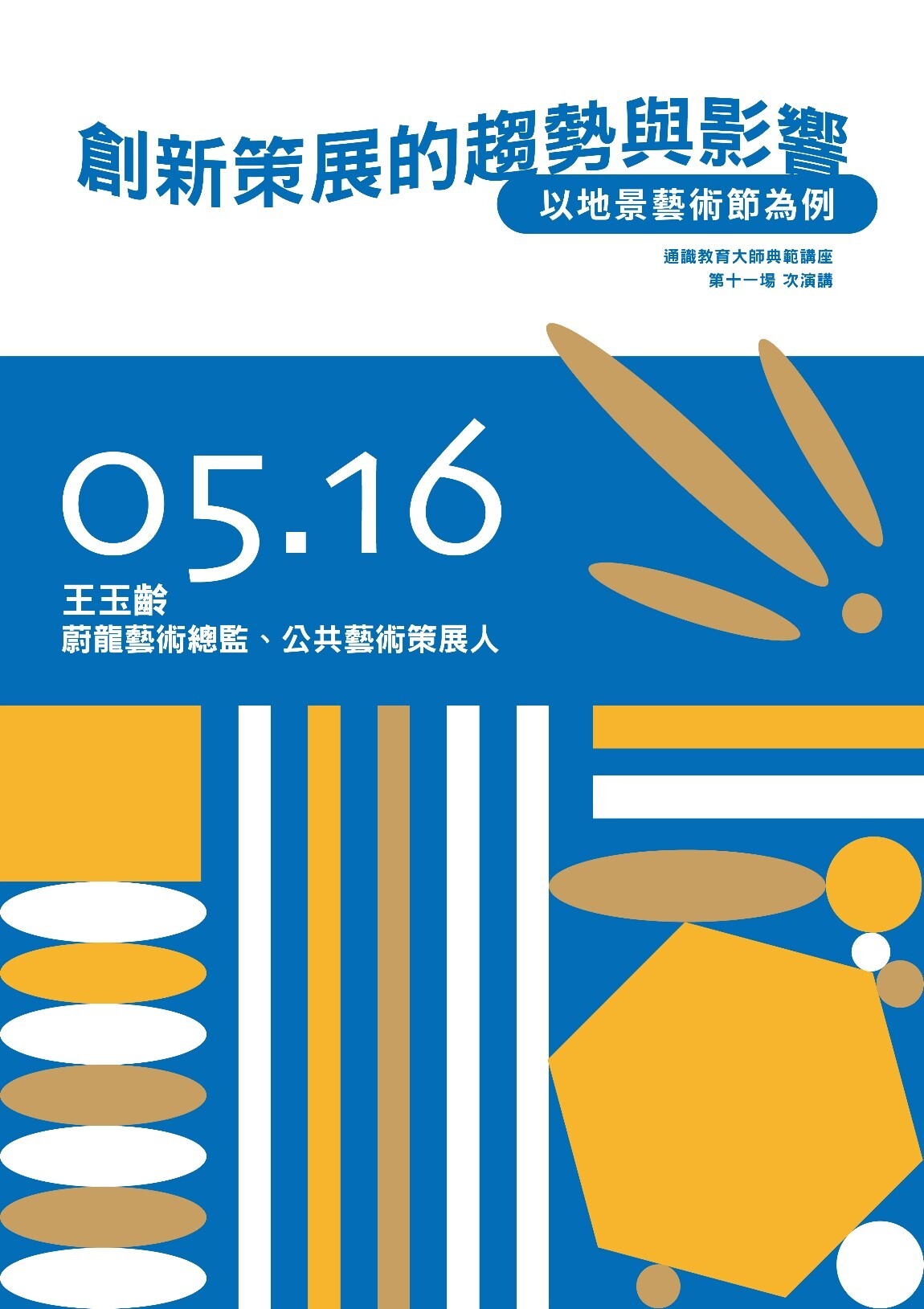 「110-2東華通識大師典範講座」於5月16日邀請蔚龍藝術有限公司王玉齡總經理來談主題「創新策展的趨勢與影響-以地景藝術節為例」。王總經理分享蔚龍藝術所接手的不同公共藝術計畫,尤其是歷年舉辦引全國矚目的地景藝術節,並藉由成功案例闡明公共藝術除了美化環境、營造優美、舒適的空間讓大眾來參觀休閒、娛樂,更有助於加強在地居民對其所在環境的認同感、自豪感與保護意識。如同重新看見自己所居住地平常不易被看見之美,在藝術潛移默化的作用下,逐漸愛上或更愛護、珍惜自己與家人所棲息的環境。