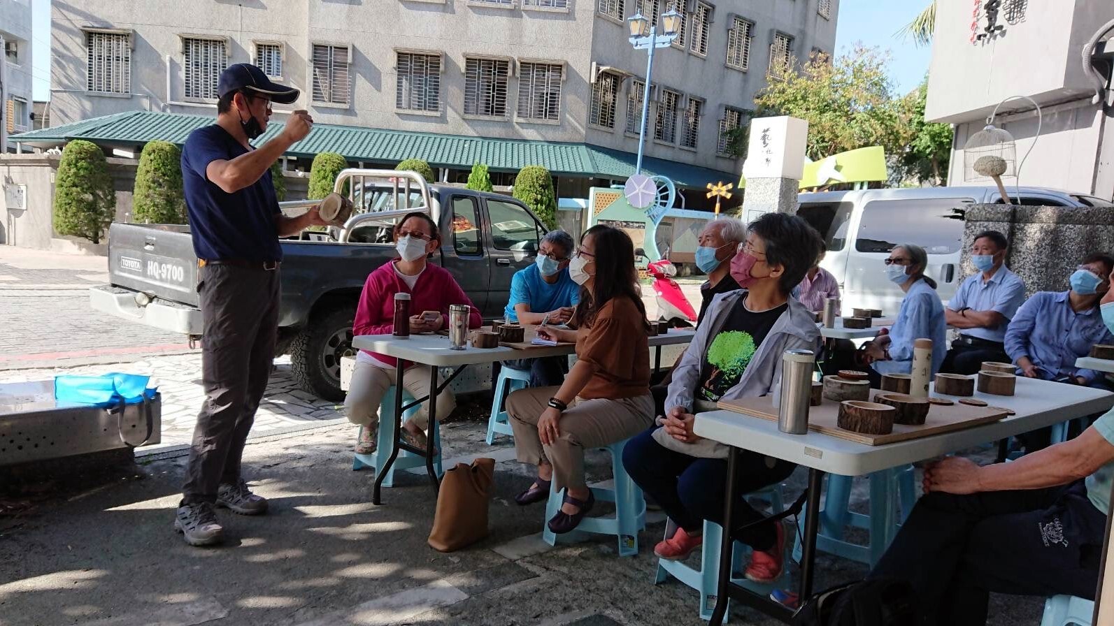 10月26日辦理的「木藝木禮~青銀樂齡多元學習工作坊」,其發想為藝術學院徐秀菊院長於晨運時,看到校園內的存放區堆滿修剪下來的樹木枝幹,於是思考著這些樹木枝幹可以如何利用,因此便邀請黃褔康老師共同討論,進而規劃出此環境永續和資源再利用的活動。
