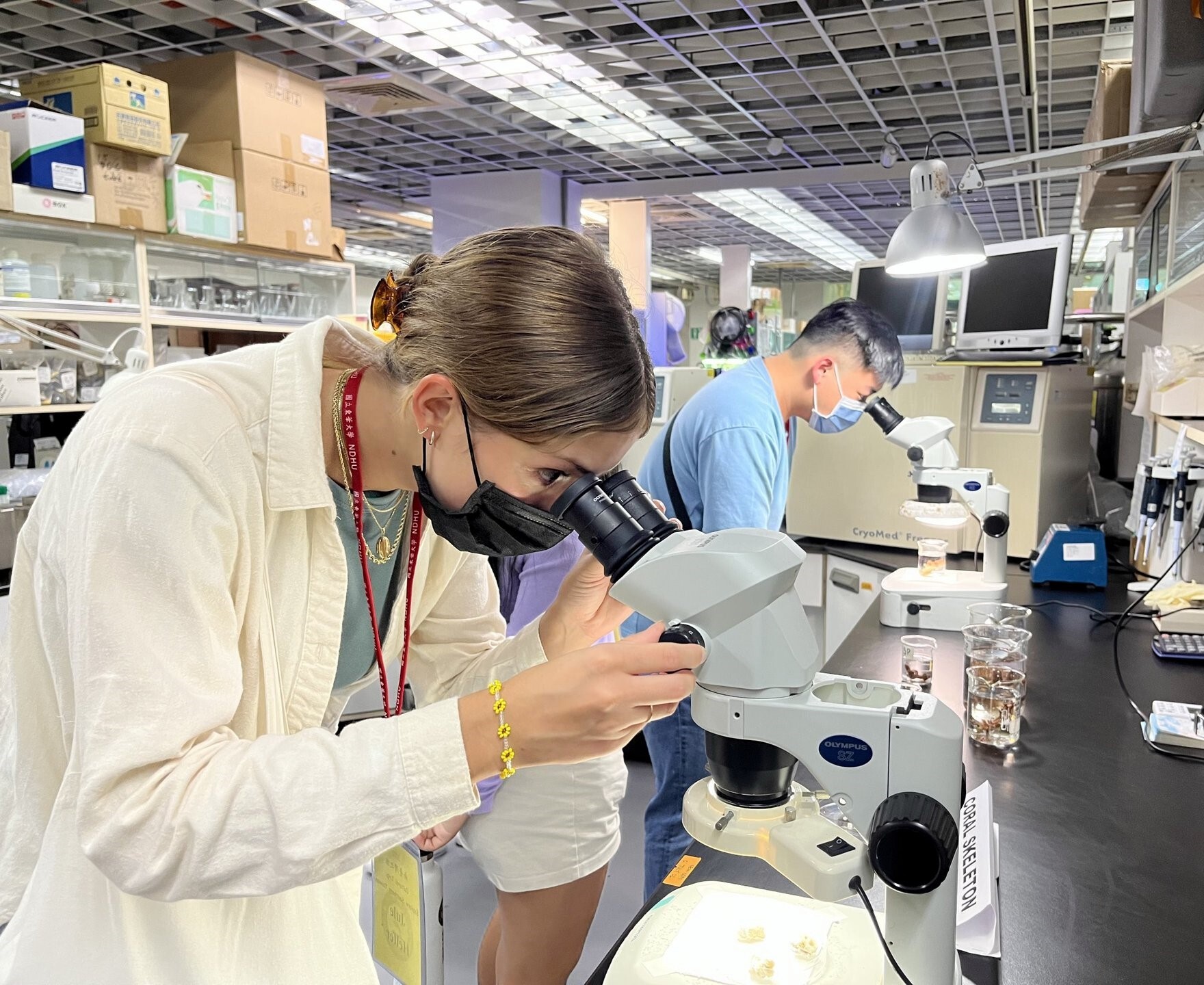 此次行程特地參訪東華大學位於屏東校區的海洋生物研究所,由何宣慶教授以及來自菲律賓、泰國、貝里斯等國海外及臺灣學生們,為境外生們介紹海生所各實驗室、教育標本館、海生復育研究區等場域。同學透過顯微鏡觀察珊瑚標本,標本實驗室瞭解標本的蒐集、標本的教育意義,對於海生所的館藏專業感到敬佩,並在何教授導覽過程中,積極提問,交流熱絡。透過參訪讓兩個校區同學有機會交流彼此專業,更讓國際生對於海生所在臺灣海洋生物、生技領域的專業性及付出印象深刻。
