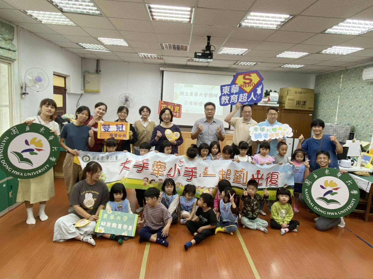 國立東華大學持續關懷花蓮0923堰塞湖災後復原工作,於11月7日啟動第三波「大手牽小手一起到光復」災後關懷行動。本次活動由學生事務處主辦,結合校內師資培育中心、幼兒教育學系的專業資源,並攜手雙冠投資公司與艾利克投資公司兩家企業之善心捐助,共同前往光復鄉幼兒園,透過實質物資捐贈與專業互動陪伴,協助撫平災區幼童的心理不安。