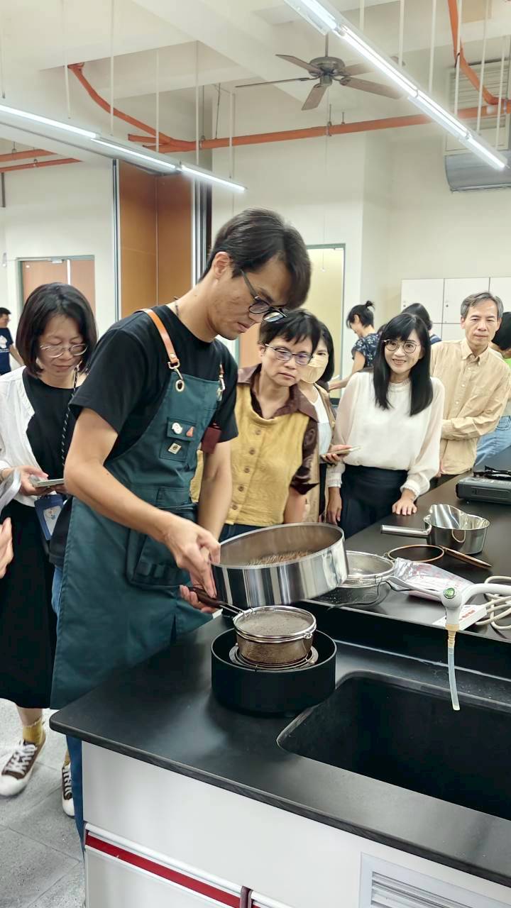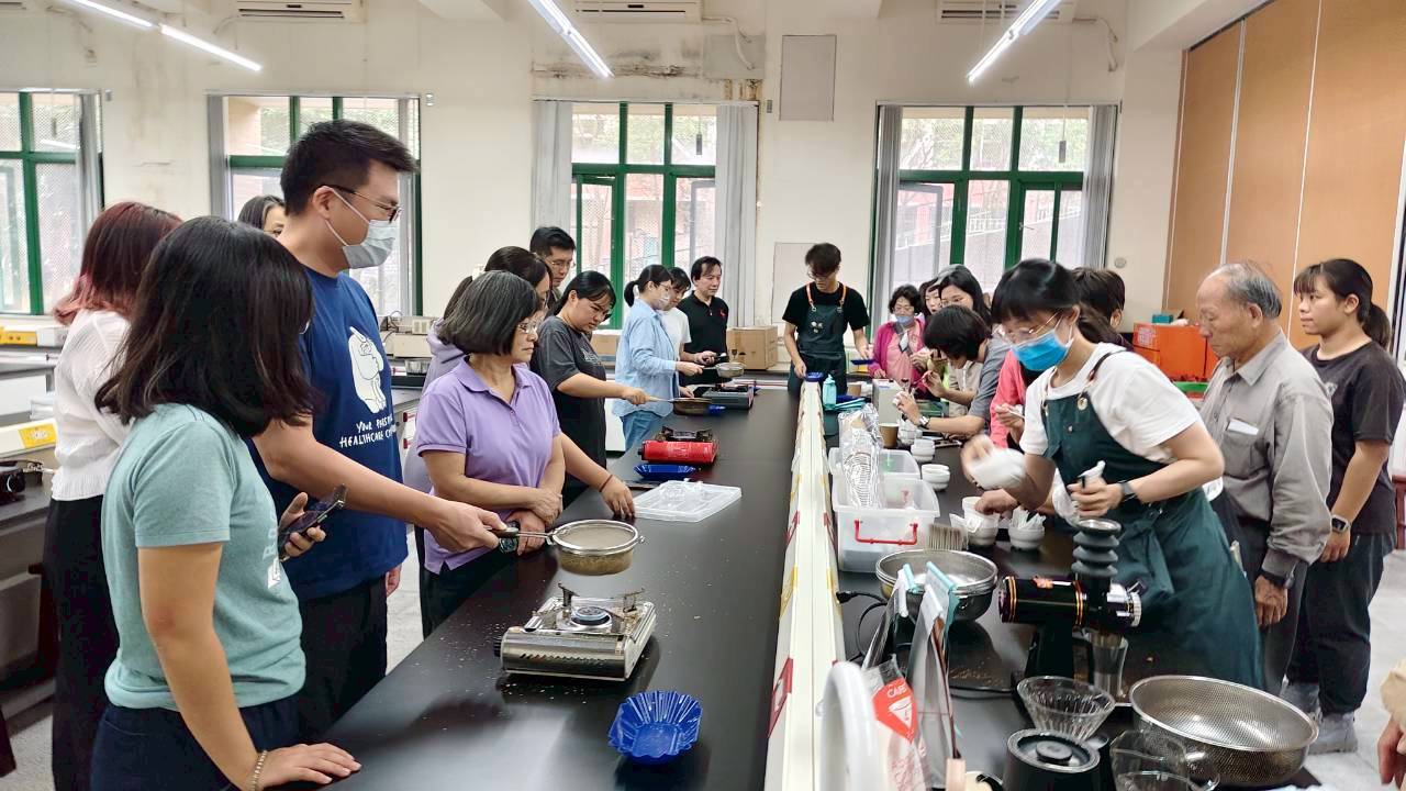 課程中,王老師深入淺出地講解咖啡起源、豆種差異與風味特性,並進一步說明如何挑選優質生豆及觀察豆貌、含水率與產區特徵;接著進入最具挑戰性的「手網烘豆」實作環節,學員們在指導下學習控制火候、掌握豆爆聲與判斷焙度變化,隨著時間推移,空氣中逐漸瀰漫濃郁的烘焙香氣,學員們親眼見證咖啡豆從青澀到散發焦糖與堅果香氣的轉變,現場豆香四溢、氣氛熱烈。實作結束後,學員們運用親手烘出的豆子,接續學習研磨、控制水溫與注水節奏,透過親手沖煮、觀察與品嚐,更深刻感受到每個細節對風味的影響,並實際體驗不同焙度的風味差異,品嚐屬於自己的「第一杯自製咖啡」。許多學員表示,這堂課讓他們首次真正理解「一杯好咖啡」背後所需的時間、溫度與專注,學習成果令人印象深刻。