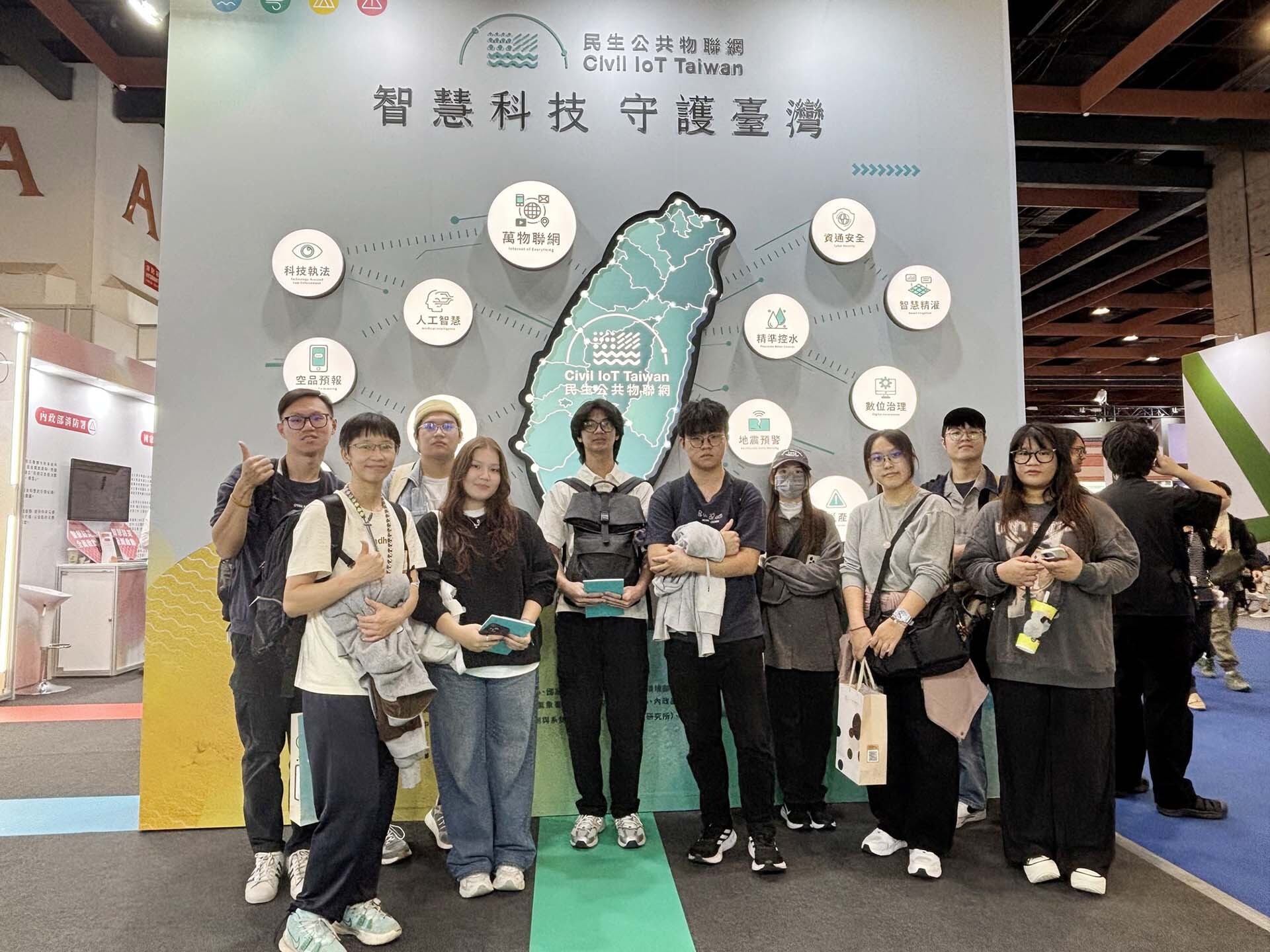 午後,學生走入科技趨勢前線,前往臺北世貿參與「台灣資訊月X臺灣教育科技展」,今年以「看見AI進行式」為主題,展現AI科技在職場、教學及生活上的學習與應用,本活動特別安排團體雙語導覽,深入瞭解國家科技政策、AI技術如何應用於地震預警、公共安全、智慧生活及智慧教育等領域。透過導覽,學生瞭解到臺北市將於11月底主辦「2025亞洲技能競賽」(WorldSkills Asia Taipei)。這是臺灣睽違30年再次取得國際技能競賽主辦權的喜訊,也進一步讓學生認識臺灣會展產業的發展潛力與多元可能性。觀展時學生能在實際提問與展示體驗中,練習科技相關英語表達,同時瞭解AI如何改變教育模式與提升學習品質,使語言能力與科技素養得以同步發展。