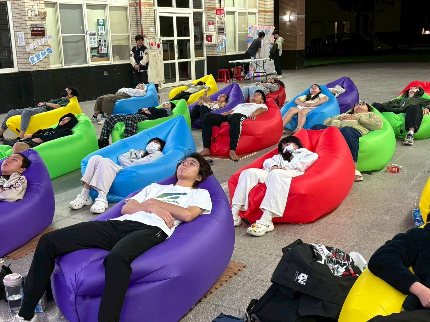 「超級放空日」以協助學生在繁重課業後重新調整步伐為核心,設計動靜皆宜兩大主題體驗。活動現場氣氛溫馨而放鬆,「放空大賽」以趣味十足的形式,引導平日忙碌的學子進入真正靜心狀態,在輕鬆的氛圍中釋放累積已久壓力,不少參賽者在過程中甚至「舒服到睡著」。另一側的「編靜手作」則展現跨界合作創意,特別邀請空軍防空暨飛彈第七九二旅派員蒞校授課,帶領學生透過專注於指尖的編織規律,體驗手作帶來的沉澱與平靜。兩類活動節奏截然不同,卻共同構築一個能安心停下來、放下壓力的友善場域。活動結束後,學生回饋極為熱烈,不少同學直呼活動「可愛又好玩」、「雖然真的放空到有點想睡覺,但期中考後可以稍微休息蠻開心的」,也有學生對工作人員表現給予高度評價,表示主持人與團隊「親切、有活力」,更有人留言許願「下次還想再來吃點心」。