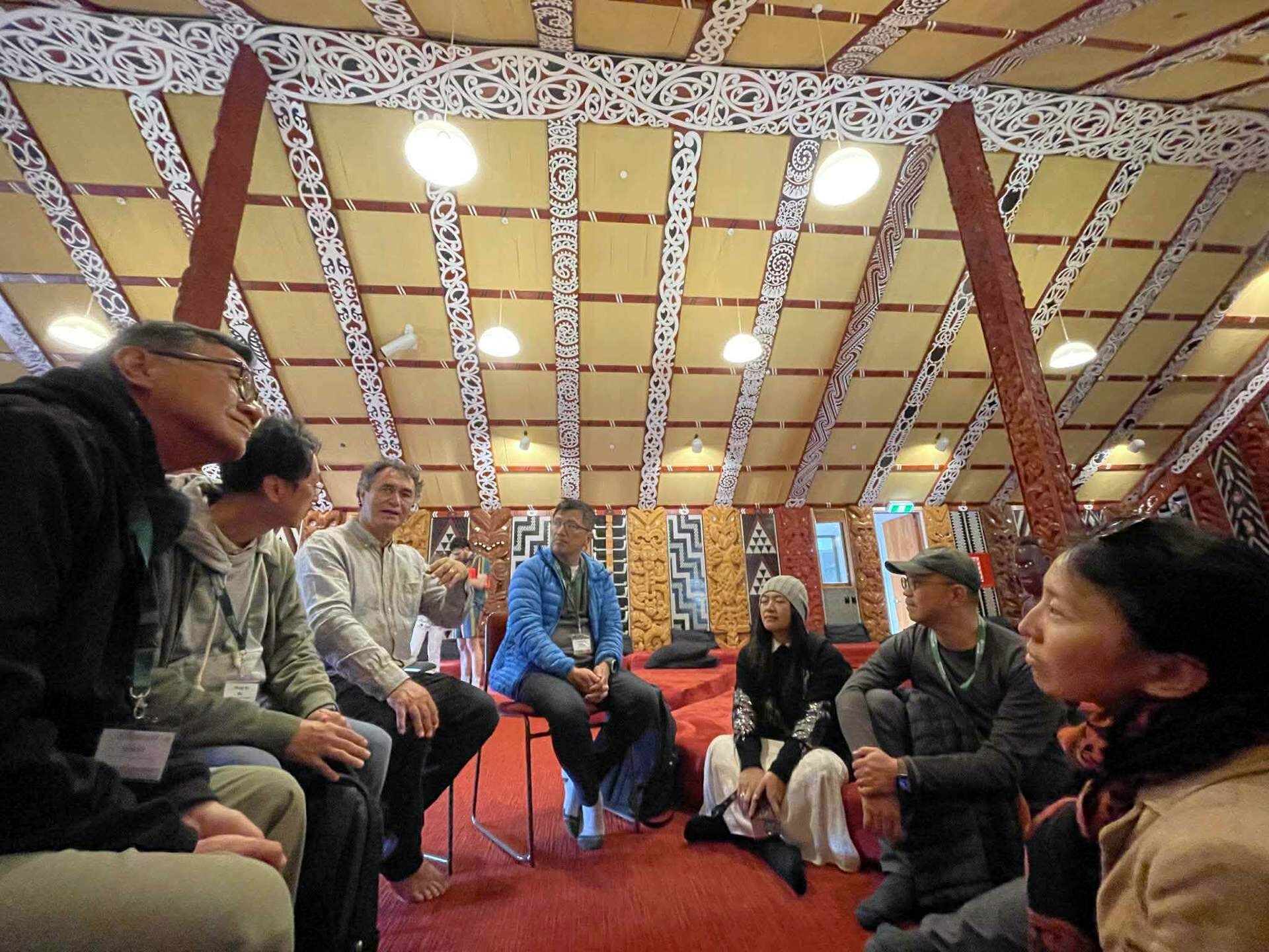 交流期間,發社系教師深入瞭解毛利學院如何透過Marae等文化空間,將族群歷史、語言與知識體系融入高等教育場域。毛利研究系主任Mike Ross指出:「沒有好的歷史,就無法創造真正屬於族人的空間。」而這樣的理念與發社系課程設計與教學實踐相互契合,亦即主張教育不只是課堂學習,更是文化、土地與記憶的延續。此外,毛利學院所在的Living Building以永續建材、淨正向環境影響為設計核心,具體實踐原住民族對土地與自然的倫理責任,與東華大學長期關注的SDGs目標相符,也讓參訪教師們進一步思考,如何在教學與研究中結合原住民族知識、環境治理與永續發展,培養能回應當代全球挑戰的專業人才。