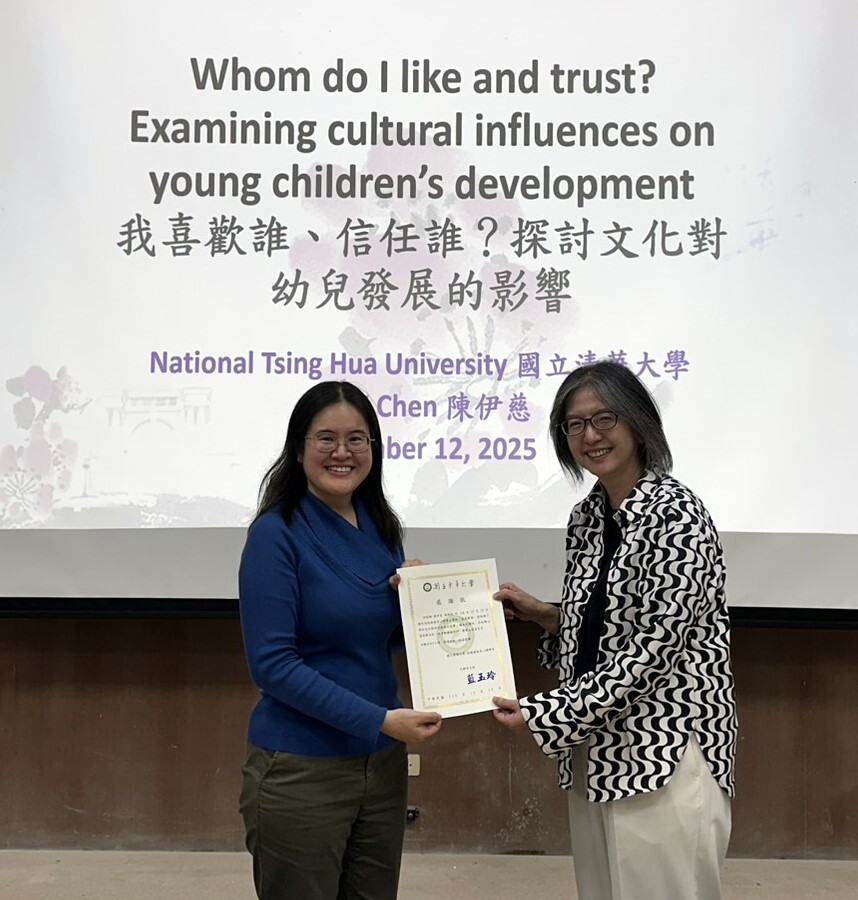 國立東華大學諮商與臨床心理學系於2025年12月12日舉辦專題學術演講,特別邀請國立清華大學教育心理與諮商學系陳伊慈副教授以「我喜歡誰、信任誰?探討文化對幼兒發展的影響」為題,分享其跨文化發展心理學研究。