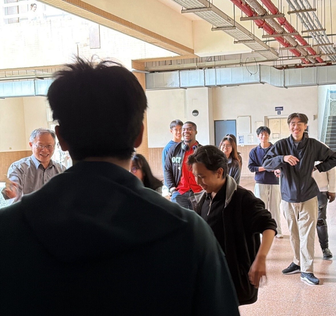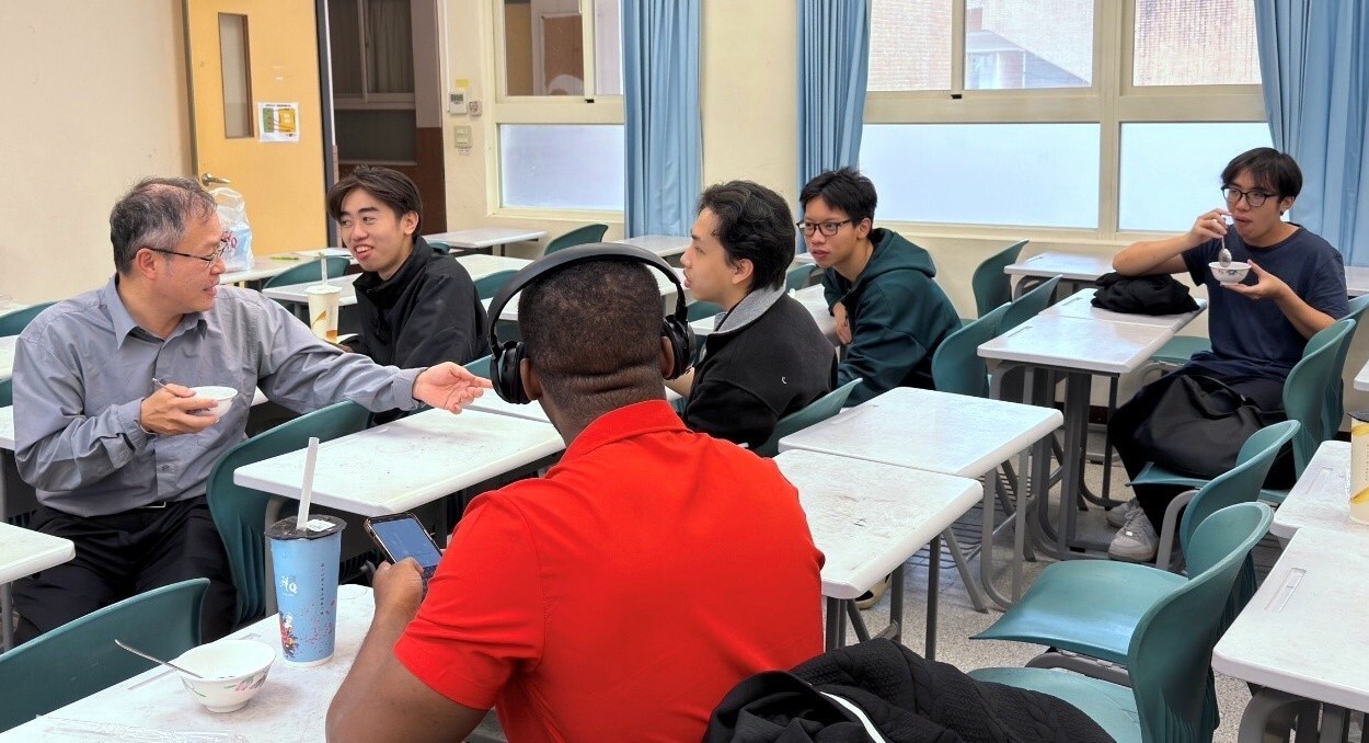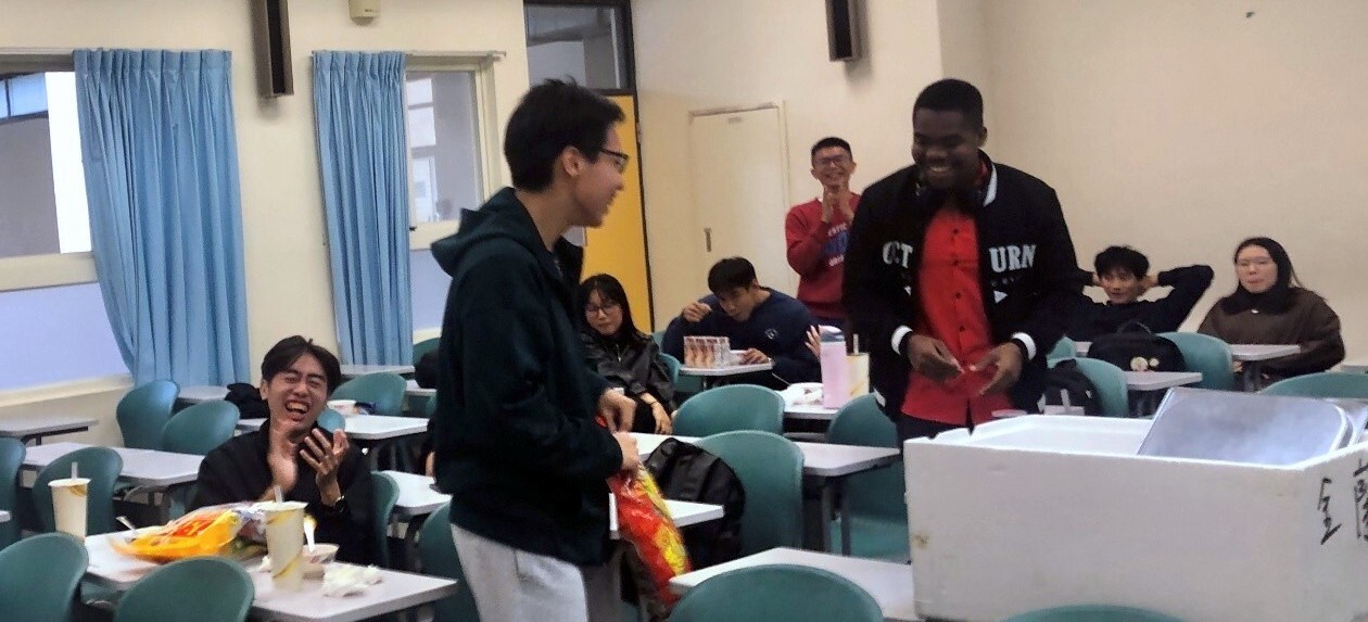 為增進學生彼此互動,活動亦安排趣味競賽,透過分組合作與輕鬆有趣的遊戲設計,鼓勵不同國籍學生相互交流、共同完成任務。特別是由呂進瑞系主任主持的「用腳丟接鞋」競賽,氣氛熱絡、笑聲不斷,充分展現跨國合作的精神與文化融合的活力。是項活動參與學生涵蓋學士班一年級、碩士班學生至博士班畢業生,國籍橫跨美洲、亞洲及非洲,多元背景齊聚一堂,共度學期末的溫馨交流時光。