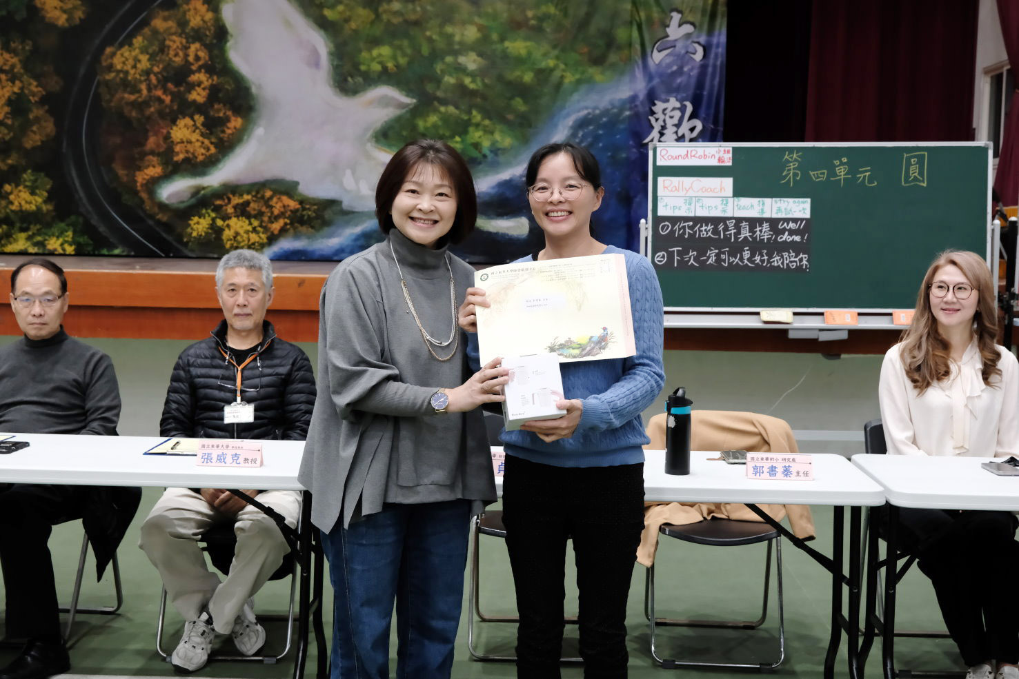 國立東華附小郭書蓁主任引用名言「教育無他,愛與榜樣而已」,提醒實習教師用心觀察教學細膩之處。她指出,教學的專業與愛心可能藏在師生的對話中、老師的背影裡,或是整體教學設計的細節安排中。