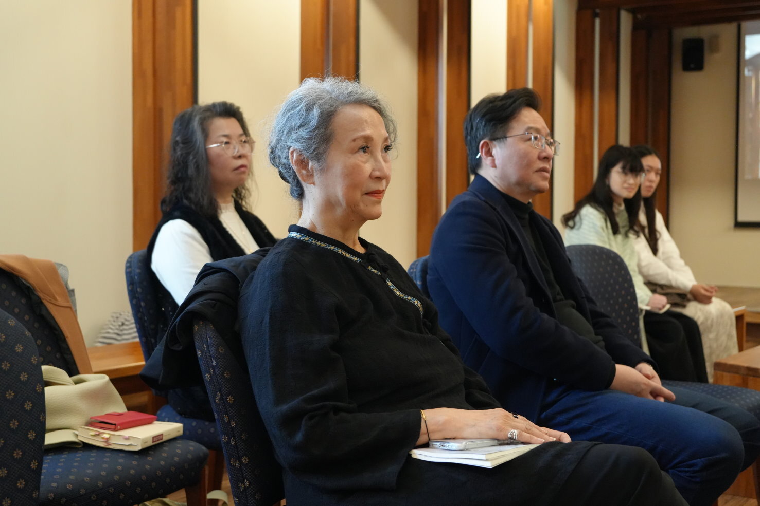 典禮尾聲,兩位召集人張寶云教授與馬翊航教授分別致詞。張寶云教授表示,詩是非常即時而當下的存在,評審會議中的思辨與激盪,讓人再次感受到文學的活力;而為楊牧老師所留下的文學世界繼續工作,是一件深感榮幸的事。馬翊航教授則引用楊牧〈海岸七疊〉中的句子:「春天即將來到,下一代/會比我們活得更充實放心。」在這個春日午後,這句話也像是一份靜靜放下的祝福,送給所有仍願意閱讀、仍願意寫作、仍願意相信文字的人。