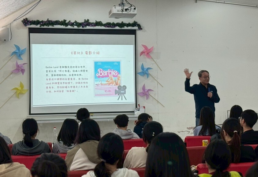 系列活動首場於3月25日在學生宿舍沁月莊交誼廳展開,放映近年引發全球熱議的電影《芭比》。在看似完美無缺的Barbie Land裡,當芭比開始出現「死亡焦慮」、不再符合完美形象時,她究竟還能是誰?而總是圍繞著芭比的肯尼,在接觸現實世界後,為何會輕易地將「權力」誤認為自己的「身分」?導讀人陳蔡慶講師引導同學透過這些提問進行思辨,一一拆解社會對「完美女性」的期待壓力,以及男性在社會框架下所承受的身分焦慮。原來,《芭比》不只是流行娛樂,更是深刻的社會反思:我們是否常在社會期待中失去了自我?