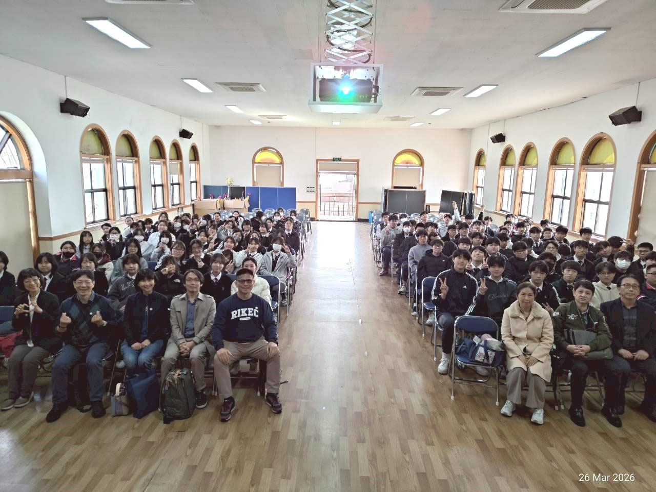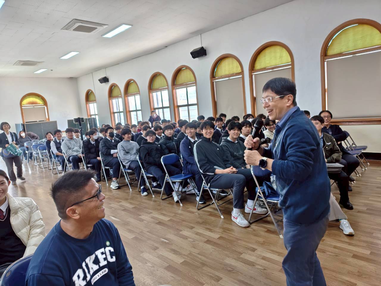 韓國仁川華僑中山中小學慕思亮校長與韓國漢城華僑中學于植盛校長皆親自接待人社院代表團,並安排呂傑華教授對高中部學生進行升學專題講座。呂教授生動且詳細地向在場僑中學生介紹東華大學的獨特優勢、絕佳的學習環境,以及人社院系所班豐富多元的學系與研究所特色。他更進一步從實務角度出發,引導學生們如何進行未來的職涯探索與規劃。講座內容貼近學生的升學需求與未來發展,引起現場高中生強烈共鳴與熱烈回應,不少學生在會後積極提問,對前往臺灣東華大學就讀展現出極高的興趣。